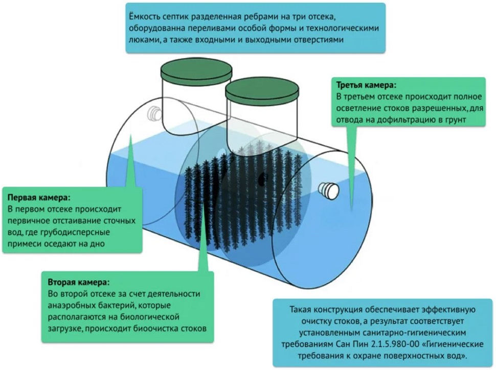 | Тип очистного устройства | септик с биофильтром |